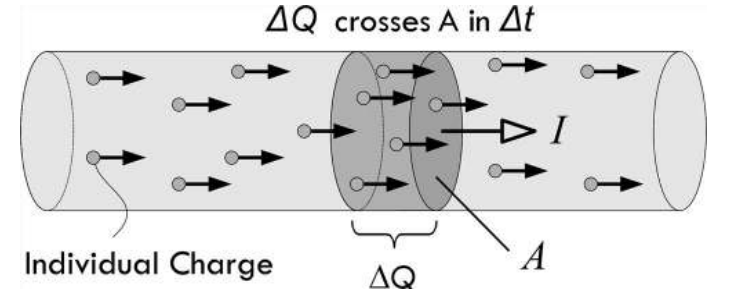 זרם חשמלי הוא כמות המטען שעוברת דרך מוליך (לדוגמה תיל נחושת) בפרק זמן מסוים. כיוון שמוליכים יכולים להיות בעוביים ובצורות שונות, הזרם מוגדר כסך כל המטענים () שעברו דרך חתך מסוים (ששטחו